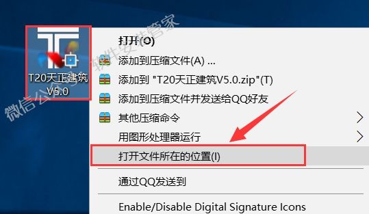 17.在桌面选中【T20天正建筑V5.0】鼠标右击选择【打开文件所在的位置】。